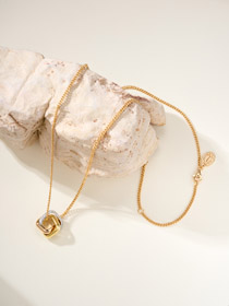 Tiffany cushion-shaped three-color ring diamond necklace-3680